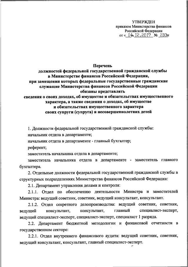 ПРИКАЗ Минфина РФ от 14.12.2017 N 233н