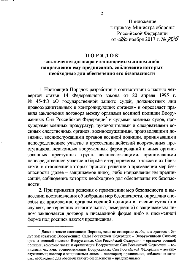 ПРИКАЗ Минобороны РФ от 24.11.2017 N 706