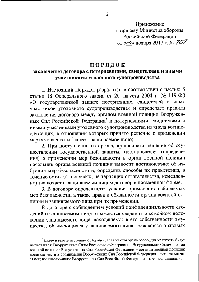 ПРИКАЗ Минобороны РФ от 24.11.2017 N 707