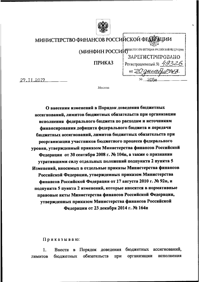 ПРИКАЗ Минфина РФ от 27.11.2017 N 205н