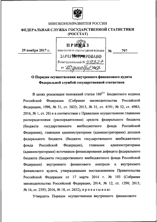 ПРИКАЗ Росстата от 29.11.2017 N 797