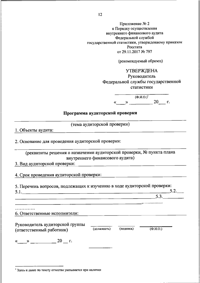 "О ПОРЯДКЕ ОСУЩЕСТВЛЕНИЯ ВНУТРЕННЕГО ФИНАНСОВОГО АУДИТА ФЕДЕРАЛЬНОЙ СЛУЖБОЙ ГОСУДАРСТВЕННОЙ СТАТИСТИКИ"
