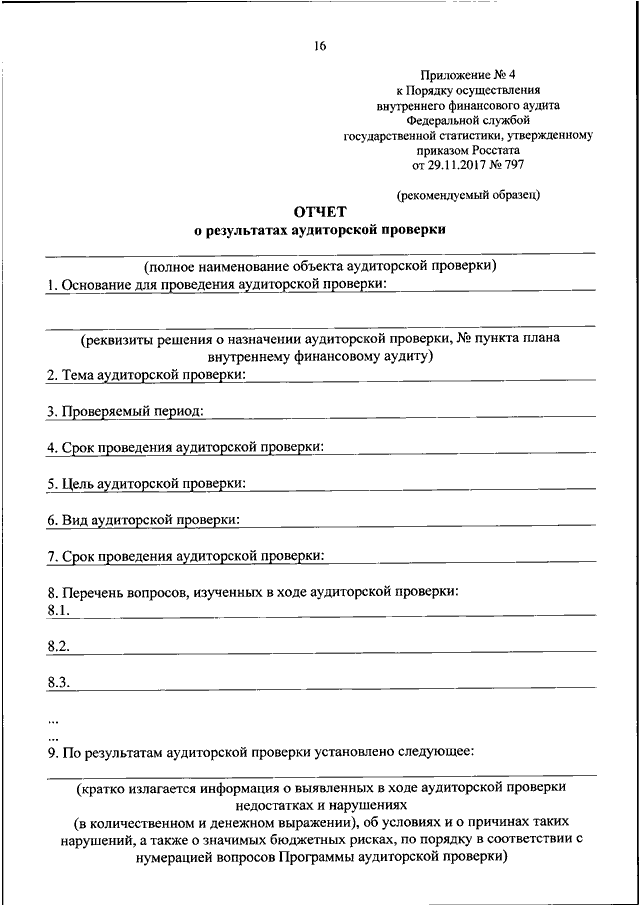 "О ПОРЯДКЕ ОСУЩЕСТВЛЕНИЯ ВНУТРЕННЕГО ФИНАНСОВОГО АУДИТА ФЕДЕРАЛЬНОЙ СЛУЖБОЙ ГОСУДАРСТВЕННОЙ СТАТИСТИКИ"