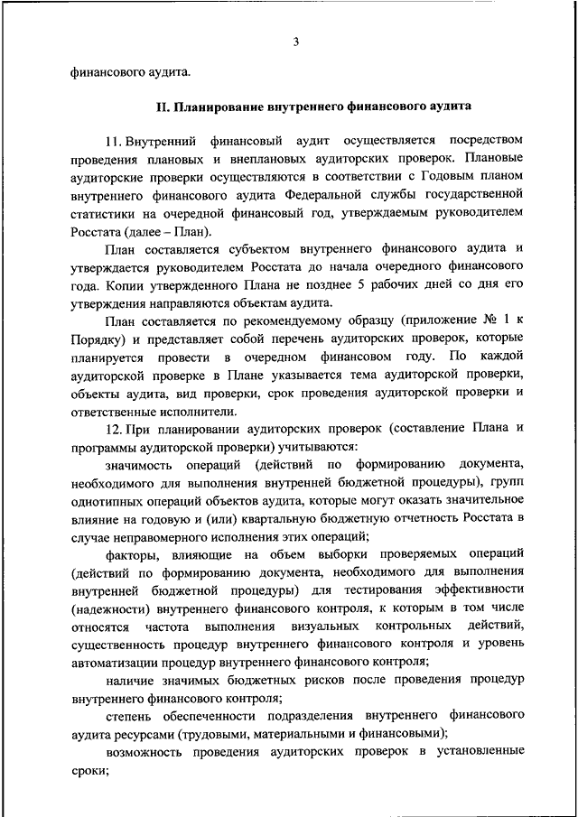 "О ПОРЯДКЕ ОСУЩЕСТВЛЕНИЯ ВНУТРЕННЕГО ФИНАНСОВОГО АУДИТА ФЕДЕРАЛЬНОЙ СЛУЖБОЙ ГОСУДАРСТВЕННОЙ СТАТИСТИКИ"