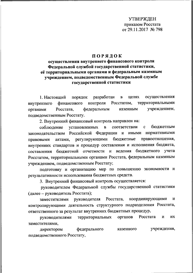 "О ПОРЯДКЕ ОСУЩЕСТВЛЕНИЯ ВНУТРЕННЕГО ФИНАНСОВОГО КОНТРОЛЯ ФЕДЕРАЛЬНОЙ СЛУЖБОЙ ГОСУДАРСТВЕННОЙ СТАТИСТИКИ, ЕЕ ТЕРРИТОРИАЛЬНЫМИ ОРГАНАМИ И ФЕДЕРАЛЬНЫМ КАЗЕННЫМ УЧРЕЖДЕНИЕМ, ПОДВЕДОМСТВЕННЫМ ФЕДЕРАЛЬНОЙ СЛУЖБЕ ГОСУДАРСТВЕННОЙ СТАТИСТИКИ"