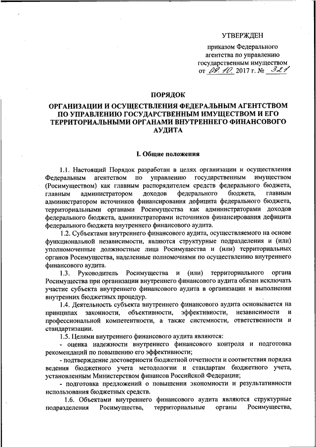 ПРИКАЗ Росимущества от 09.10.2017 N 321