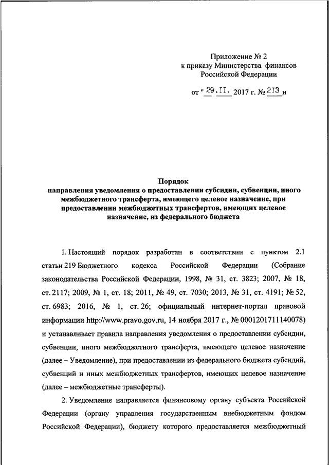 ПРИКАЗ Минфина РФ от 29.11.2017 N 213н