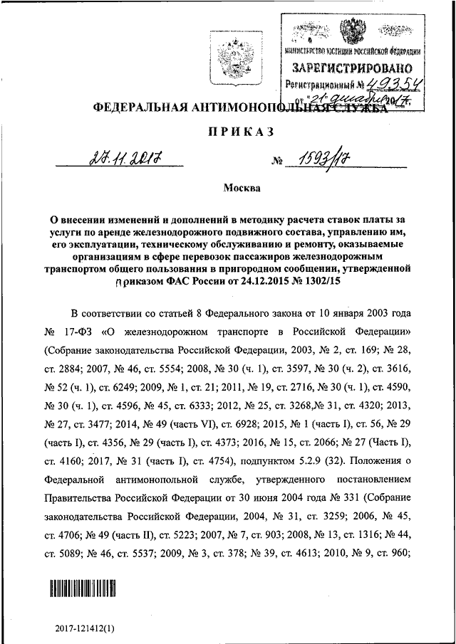 ПРИКАЗ Федеральной антимонопольной службы от 27.11.2017 N 1593/17