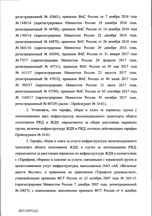 "ОБ УСТАНОВЛЕНИИ ТАРИФОВ, СБОРОВ И ПЛАТЫ ЗА УСЛУГИ, СВЯЗАННЫЕ С ПЕРЕВОЗКОЙ ГРУЗОВ, И ПРАВИЛ ИХ ПРИМЕНЕНИЯ ПРИ ОСУЩЕСТВЛЕНИИ ПЕРЕВОЗОК ГРУЗОВ ЖЕЛЕЗНОДОРОЖНЫМ ТРАНСПОРТОМ ОБЩЕГО ПОЛЬЗОВАНИЯ, В ТОМ ЧИСЛЕ ПЕРЕВОЗОК ПОРОЖНЕГО ЖЕЛЕЗНОДОРОЖНОГО ПОДВИЖНОГО СОСТАВА В СОСТАВЕ ГРУЗОВЫХ ПОЕЗДОВ, С УЧАСТИЕМ ИНФРАСТРУКТУРЫ ЖЕЛЕЗНОДОРОЖНОГО ТРАНСПОРТА ОБЩЕГО ПОЛЬЗОВАНИЯ АО "АК "ЖЕЛЕЗНЫЕ ДОРОГИ ЯКУТИИ", А ТАКЖЕ С УЧАСТИЕМ ДВУХ ИНФРАСТРУКТУР ЖЕЛЕЗНОДОРОЖНОГО ТРАНСПОРТА ОБЩЕГО ПОЛЬЗОВАНИЯ ОАО "РОССИЙСКИЕ ЖЕЛЕЗНЫЕ ДОРОГИ" И АО "АК "ЖЕЛЕЗНЫЕ ДОРОГИ ЯКУТИИ"