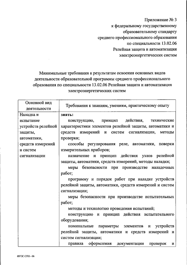 "ОБ УТВЕРЖДЕНИИ ФЕДЕРАЛЬНОГО ГОСУДАРСТВЕННОГО ОБРАЗОВАТЕЛЬНОГО СТАНДАРТА СРЕДНЕГО ПРОФЕССИОНАЛЬНОГО ОБРАЗОВАНИЯ ПО СПЕЦИАЛЬНОСТИ 13.02.06 РЕЛЕЙНАЯ ЗАЩИТА И АВТОМАТИЗАЦИЯ ЭЛЕКТРОЭНЕРГЕТИЧЕСКИХ СИСТЕМ"