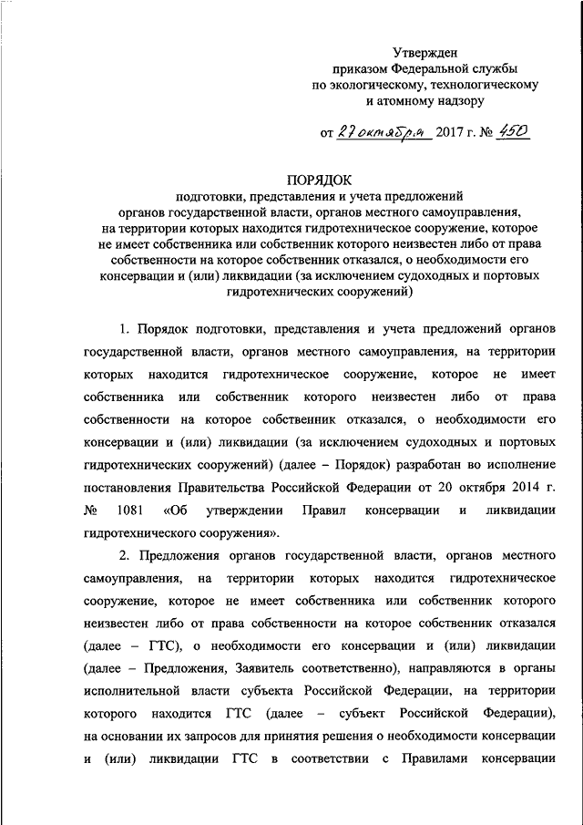 ПРИКАЗ Ростехнадзора от 27.10.2017 N 450