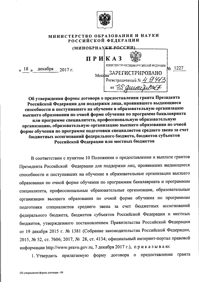 ПРИКАЗ Минобрнауки РФ от 18.12.2017 N 1227