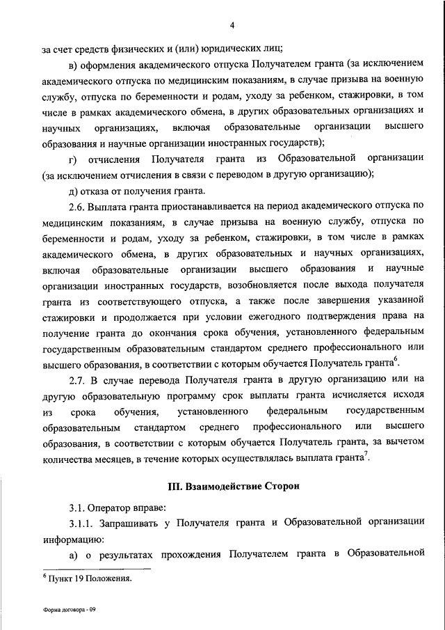 "ОБ УТВЕРЖДЕНИИ ФОРМЫ ДОГОВОРА О ПРЕДОСТАВЛЕНИИ ГРАНТА ПРЕЗИДЕНТА РОССИЙСКОЙ ФЕДЕРАЦИИ ДЛЯ ПОДДЕРЖКИ ЛИЦА, ПРОЯВИВШЕГО ВЫДАЮЩИЕСЯ СПОСОБНОСТИ И ПОСТУПИВШЕГО НА ОБУЧЕНИЕ В ОБРАЗОВАТЕЛЬНУЮ ОРГАНИЗАЦИЮ ВЫСШЕГО ОБРАЗОВАНИЯ ПО ОЧНОЙ ФОРМЕ ОБУЧЕНИЯ ПО ПРОГРАММЕ БАКАЛАВРИАТА ИЛИ ПРОГРАММЕ СПЕЦИАЛИТЕТА, ПРОФЕССИОНАЛЬНУЮ ОБРАЗОВАТЕЛЬНУЮ ОРГАНИЗАЦИЮ, ОБРАЗОВАТЕЛЬНУЮ ОРГАНИЗАЦИЮ ВЫСШЕГО ОБРАЗОВАНИЯ ПО ОЧНОЙ ФОРМЕ ОБУЧЕНИЯ ПО ПРОГРАММЕ ПОДГОТОВКИ СПЕЦИАЛИСТОВ СРЕДНЕГО ЗВЕНА ЗА СЧЕТ БЮДЖЕТНЫХ АССИГНОВАНИЙ ФЕДЕРАЛЬНОГО БЮДЖЕТА, БЮДЖЕТОВ СУБЪЕКТОВ РОССИЙСКОЙ ФЕДЕРАЦИИ ИЛИ МЕСТНЫХ БЮДЖЕТОВ"