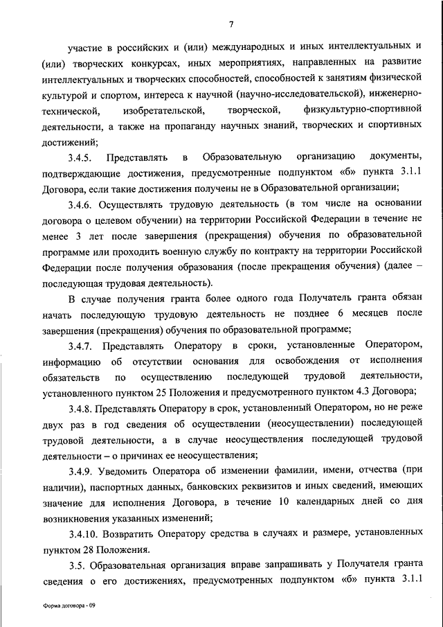 "ОБ УТВЕРЖДЕНИИ ФОРМЫ ДОГОВОРА О ПРЕДОСТАВЛЕНИИ ГРАНТА ПРЕЗИДЕНТА РОССИЙСКОЙ ФЕДЕРАЦИИ ДЛЯ ПОДДЕРЖКИ ЛИЦА, ПРОЯВИВШЕГО ВЫДАЮЩИЕСЯ СПОСОБНОСТИ И ПОСТУПИВШЕГО НА ОБУЧЕНИЕ В ОБРАЗОВАТЕЛЬНУЮ ОРГАНИЗАЦИЮ ВЫСШЕГО ОБРАЗОВАНИЯ ПО ОЧНОЙ ФОРМЕ ОБУЧЕНИЯ ПО ПРОГРАММЕ БАКАЛАВРИАТА ИЛИ ПРОГРАММЕ СПЕЦИАЛИТЕТА, ПРОФЕССИОНАЛЬНУЮ ОБРАЗОВАТЕЛЬНУЮ ОРГАНИЗАЦИЮ, ОБРАЗОВАТЕЛЬНУЮ ОРГАНИЗАЦИЮ ВЫСШЕГО ОБРАЗОВАНИЯ ПО ОЧНОЙ ФОРМЕ ОБУЧЕНИЯ ПО ПРОГРАММЕ ПОДГОТОВКИ СПЕЦИАЛИСТОВ СРЕДНЕГО ЗВЕНА ЗА СЧЕТ БЮДЖЕТНЫХ АССИГНОВАНИЙ ФЕДЕРАЛЬНОГО БЮДЖЕТА, БЮДЖЕТОВ СУБЪЕКТОВ РОССИЙСКОЙ ФЕДЕРАЦИИ ИЛИ МЕСТНЫХ БЮДЖЕТОВ"