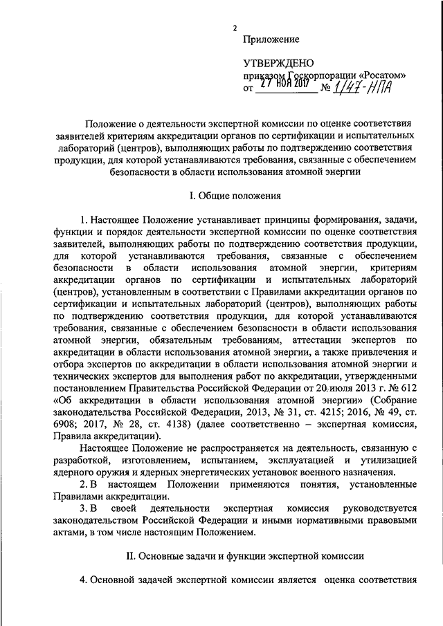 "ОБ УТВЕРЖДЕНИИ ПОЛОЖЕНИЯ О ДЕЯТЕЛЬНОСТИ ЭКСПЕРТНОЙ КОМИССИИ ПО ОЦЕНКЕ СООТВЕТСТВИЯ ЗАЯВИТЕЛЕЙ КРИТЕРИЯМ АККРЕДИТАЦИИ ОРГАНОВ ПО СЕРТИФИКАЦИИ И ИСПЫТАТЕЛЬНЫХ ЛАБОРАТОРИЙ (ЦЕНТРОВ), ВЫПОЛНЯЮЩИХ РАБОТЫ ПО ПОДТВЕРЖДЕНИЮ СООТВЕТСТВИЯ ПРОДУКЦИИ, ДЛЯ КОТОРОЙ УСТАНАВЛИВАЮТСЯ ТРЕБОВАНИЯ, СВЯЗАННЫЕ С ОБЕСПЕЧЕНИЕМ БЕЗОПАСНОСТИ В ОБЛАСТИ ИСПОЛЬЗОВАНИЯ АТОМНОЙ ЭНЕРГИИ"