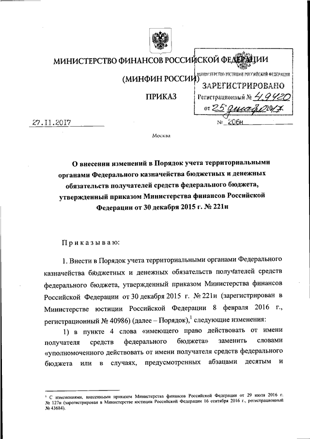 ПРИКАЗ Минфина РФ от 27.11.2017 N 206н