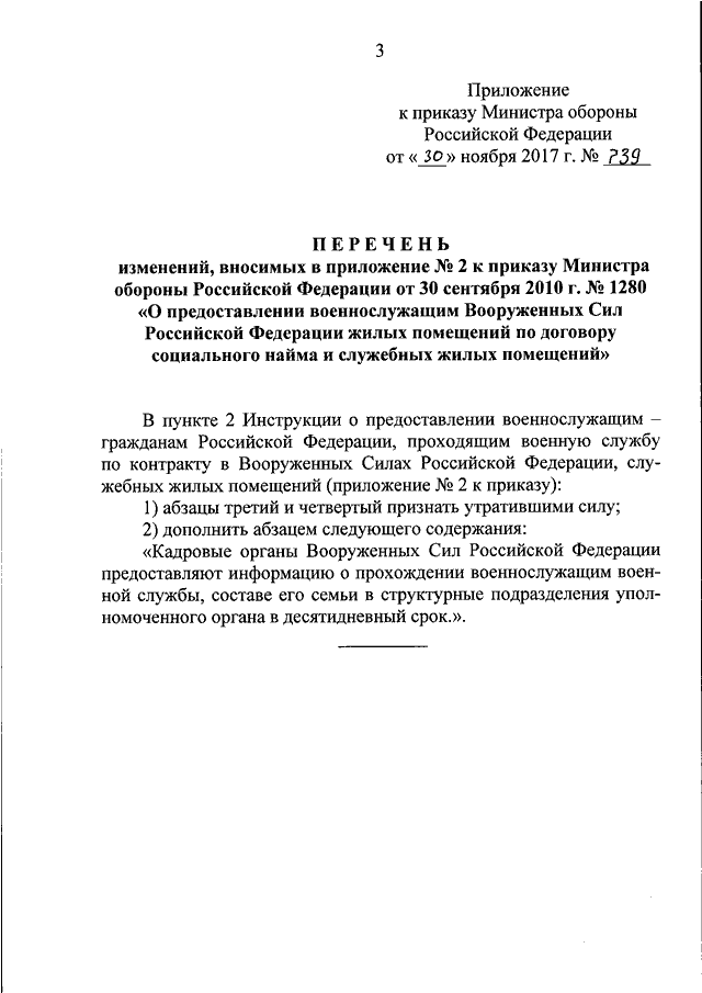 ПРИКАЗ Минобороны РФ от 30.11.2017 N 739