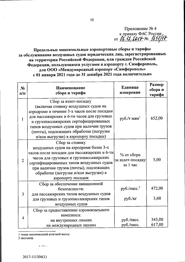 "ОБ УТВЕРЖДЕНИИ ТАРИФОВ (СБОРОВ) НА УСЛУГИ В АЭРОПОРТУ Г. СИМФЕРОПОЛЬ, ОКАЗЫВАЕМЫЕ ООО "МЕЖДУНАРОДНЫЙ АЭРОПОРТ "СИМФЕРОПОЛЬ"