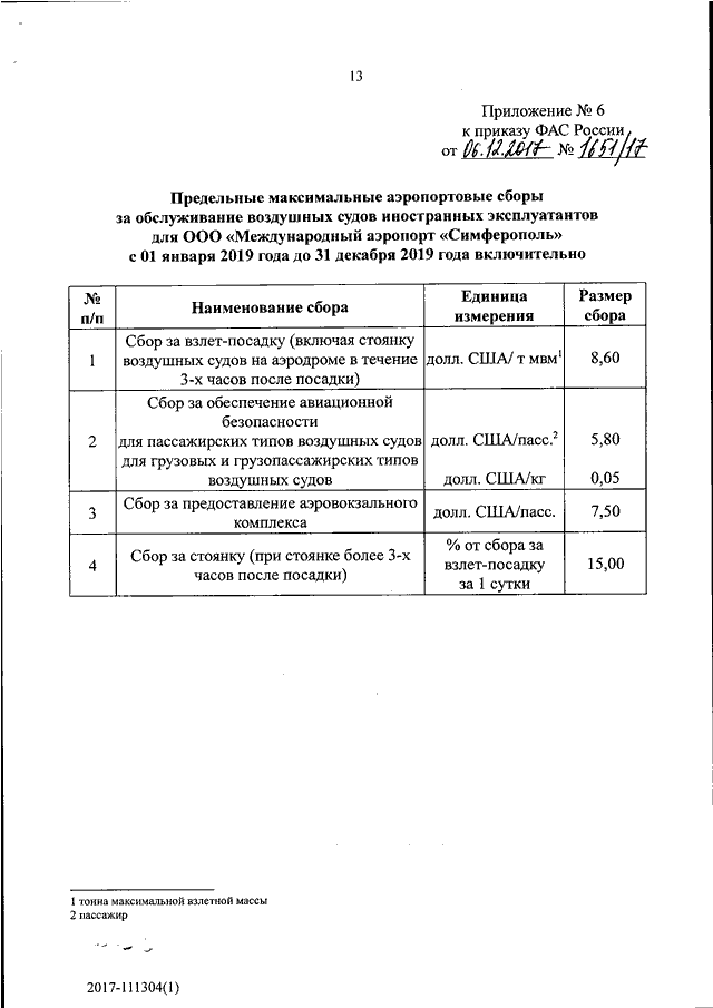 "ОБ УТВЕРЖДЕНИИ ТАРИФОВ (СБОРОВ) НА УСЛУГИ В АЭРОПОРТУ Г. СИМФЕРОПОЛЬ, ОКАЗЫВАЕМЫЕ ООО "МЕЖДУНАРОДНЫЙ АЭРОПОРТ "СИМФЕРОПОЛЬ"