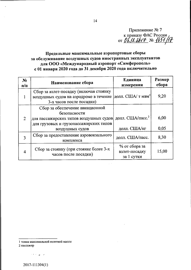 "ОБ УТВЕРЖДЕНИИ ТАРИФОВ (СБОРОВ) НА УСЛУГИ В АЭРОПОРТУ Г. СИМФЕРОПОЛЬ, ОКАЗЫВАЕМЫЕ ООО "МЕЖДУНАРОДНЫЙ АЭРОПОРТ "СИМФЕРОПОЛЬ"