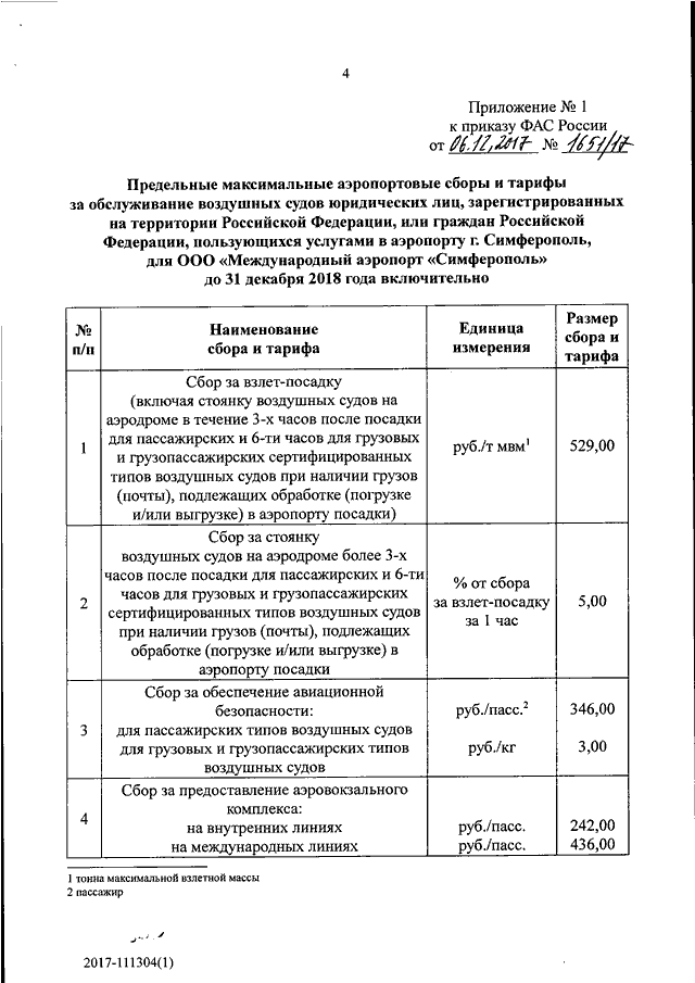 "ОБ УТВЕРЖДЕНИИ ТАРИФОВ (СБОРОВ) НА УСЛУГИ В АЭРОПОРТУ Г. СИМФЕРОПОЛЬ, ОКАЗЫВАЕМЫЕ ООО "МЕЖДУНАРОДНЫЙ АЭРОПОРТ "СИМФЕРОПОЛЬ"