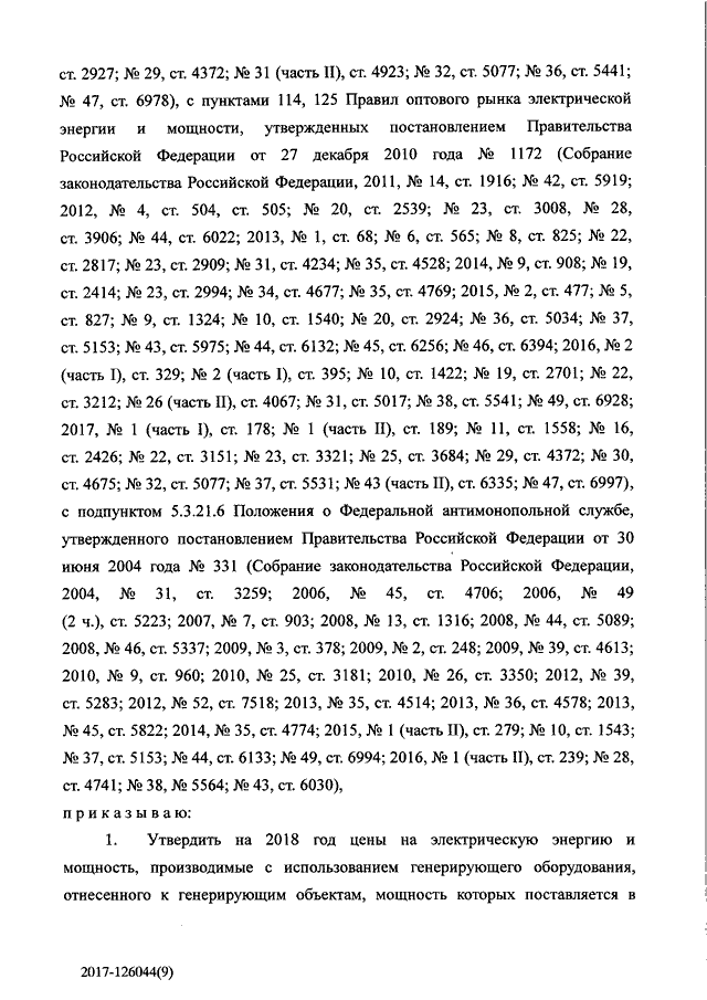 "ОБ УТВЕРЖДЕНИИ ЦЕН НА ЭЛЕКТРИЧЕСКУЮ ЭНЕРГИЮ И МОЩНОСТЬ, ПРОИЗВОДИМЫЕ С ИСПОЛЬЗОВАНИЕМ ГЕНЕРИРУЮЩИХ ОБЪЕКТОВ, ПОСТАВЛЯЮЩИХ МОЩНОСТЬ В ВЫНУЖДЕННОМ РЕЖИМЕ, НА 2018 ГОД"