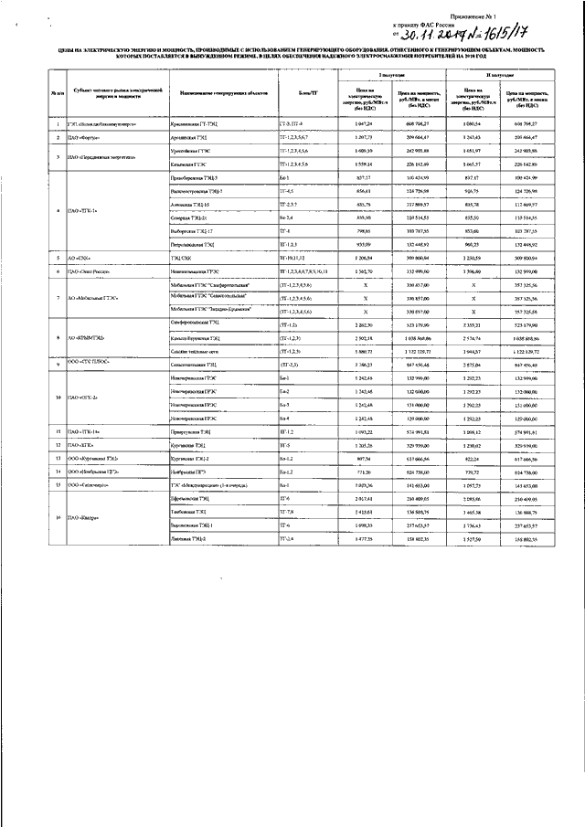 "ОБ УТВЕРЖДЕНИИ ЦЕН НА ЭЛЕКТРИЧЕСКУЮ ЭНЕРГИЮ И МОЩНОСТЬ, ПРОИЗВОДИМЫЕ С ИСПОЛЬЗОВАНИЕМ ГЕНЕРИРУЮЩИХ ОБЪЕКТОВ, ПОСТАВЛЯЮЩИХ МОЩНОСТЬ В ВЫНУЖДЕННОМ РЕЖИМЕ, НА 2018 ГОД"