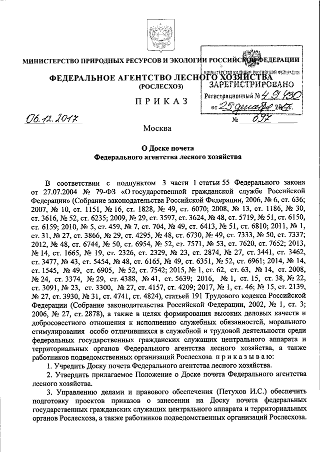 "О ДОСКЕ ПОЧЕТА ФЕДЕРАЛЬНОГО АГЕНТСТВА ЛЕСНОГО ХОЗЯЙСТВА"