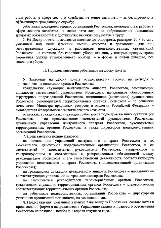 "О ДОСКЕ ПОЧЕТА ФЕДЕРАЛЬНОГО АГЕНТСТВА ЛЕСНОГО ХОЗЯЙСТВА"
