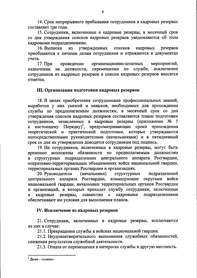 "ОБ УТВЕРЖДЕНИИ ПОРЯДКА ФОРМИРОВАНИЯ КАДРОВЫХ РЕЗЕРВОВ ВОЙСК НАЦИОНАЛЬНОЙ ГВАРДИИ РОССИЙСКОЙ ФЕДЕРАЦИИ ДЛЯ ЗАМЕЩЕНИЯ ДОЛЖНОСТЕЙ РУКОВОДИТЕЛЕЙ (НАЧАЛЬНИКОВ) ИЗ ЧИСЛА ДОЛЖНОСТЕЙ СРЕДНЕГО И СТАРШЕГО НАЧАЛЬСТВУЮЩЕГО СОСТАВА"