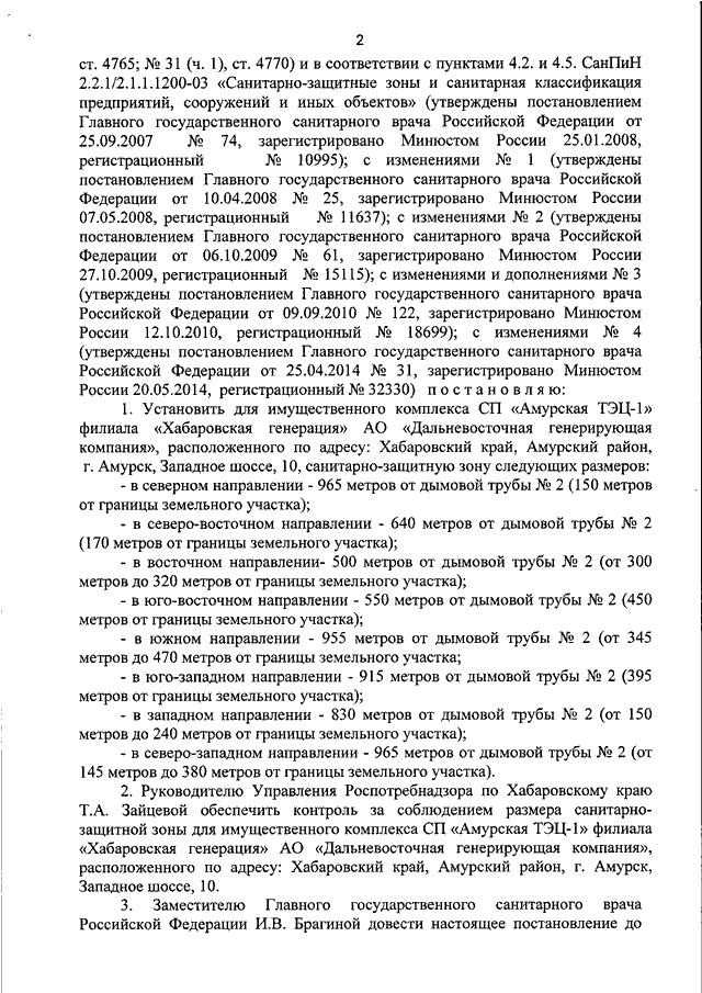 "ОБ УСТАНОВЛЕНИИ РАЗМЕРА САНИТАРНО - ЗАЩИТНОЙ ЗОНЫ ДЛЯ ИМУЩЕСТВЕННОГО КОМПЛЕКСА СП "АМУРСКАЯ ТЭЦ-1" ФИЛИАЛА "ХАБАРОВСКАЯ ГЕНЕРАЦИЯ" АО "ДАЛЬНЕВОСТОЧНАЯ ГЕНЕРИРУЮЩАЯ КОМПАНИЯ", РАСПОЛОЖЕННОГО ПО АДРЕСУ: ХАБАРОВСКИЙ КРАЙ, АМУРСКИЙ РАЙОН, Г. АМУРСК, ЗАПАДНОЕ ШОССЕ, 10"