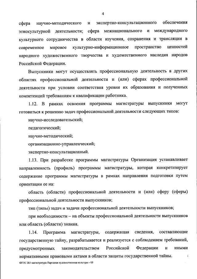 "ОБ УТВЕРЖДЕНИИ ФЕДЕРАЛЬНОГО ГОСУДАРСТВЕННОГО ОБРАЗОВАТЕЛЬНОГО СТАНДАРТА ВЫСШЕГО ОБРАЗОВАНИЯ - МАГИСТРАТУРА ПО НАПРАВЛЕНИЮ ПОДГОТОВКИ 51.04.02 НАРОДНАЯ ХУДОЖЕСТВЕННАЯ КУЛЬТУРА"