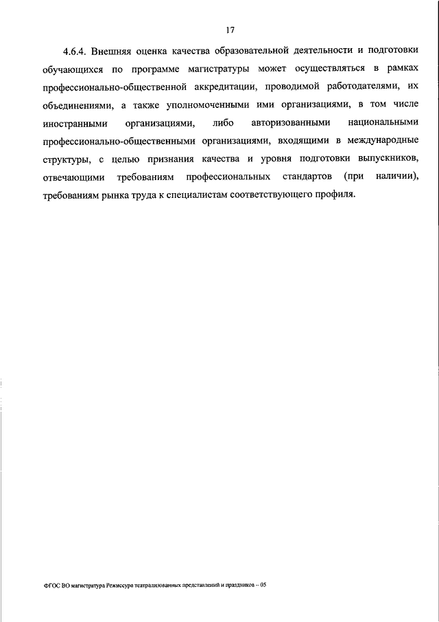 "ОБ УТВЕРЖДЕНИИ ФЕДЕРАЛЬНОГО ГОСУДАРСТВЕННОГО ОБРАЗОВАТЕЛЬНОГО СТАНДАРТА ВЫСШЕГО ОБРАЗОВАНИЯ - МАГИСТРАТУРА ПО НАПРАВЛЕНИЮ ПОДГОТОВКИ 51.04.05 РЕЖИССУРА ТЕАТРАЛИЗОВАННЫХ ПРЕДСТАВЛЕНИЙ И ПРАЗДНИКОВ"