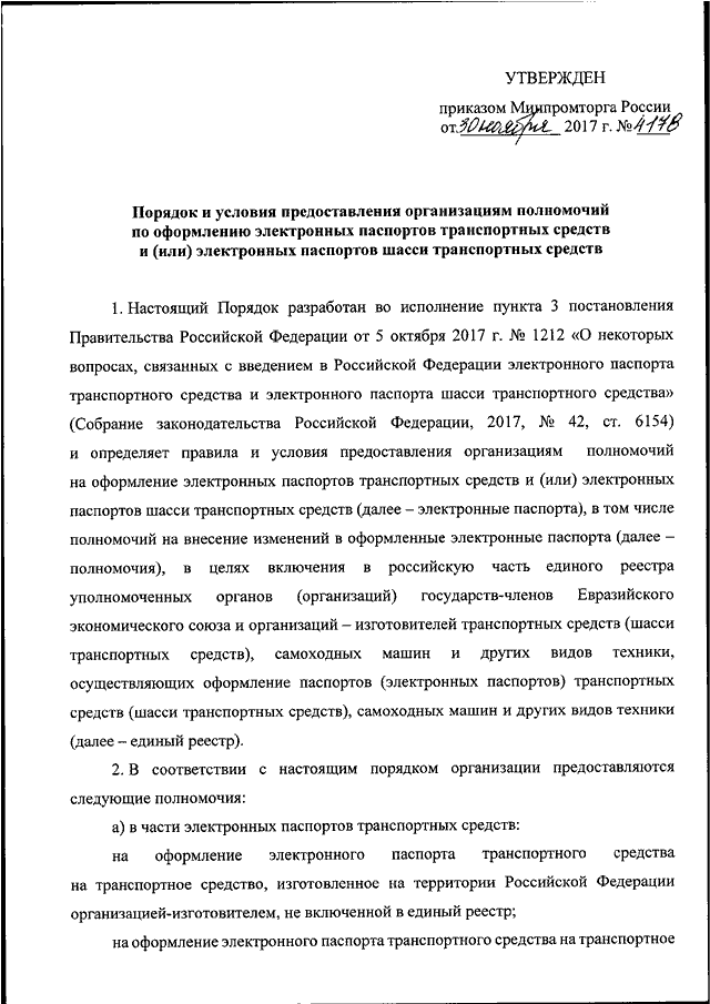 ПРИКАЗ Минпромторга РФ от 30.11.2017 N 4178