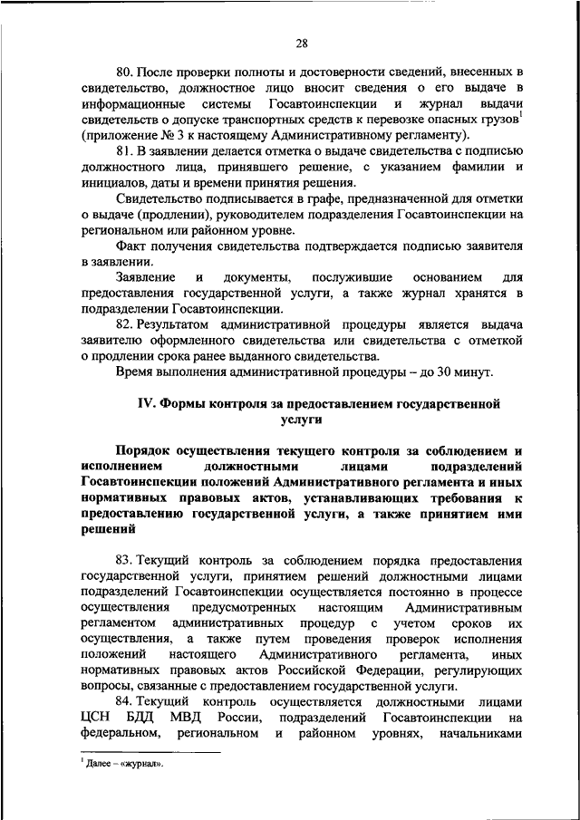 "ОБ УТВЕРЖДЕНИИ АДМИНИСТРАТИВНОГО РЕГЛАМЕНТА МИНИСТЕРСТВА ВНУТРЕННИХ ДЕЛ РОССИЙСКОЙ ФЕДЕРАЦИИ ПО ПРЕДОСТАВЛЕНИЮ ГОСУДАРСТВЕННОЙ УСЛУГИ ПО ВЫДАЧЕ СВИДЕТЕЛЬСТВА О ДОПУСКЕ ТРАНСПОРТНЫХ СРЕДСТВ К ПЕРЕВОЗКЕ ОПАСНЫХ ГРУЗОВ"