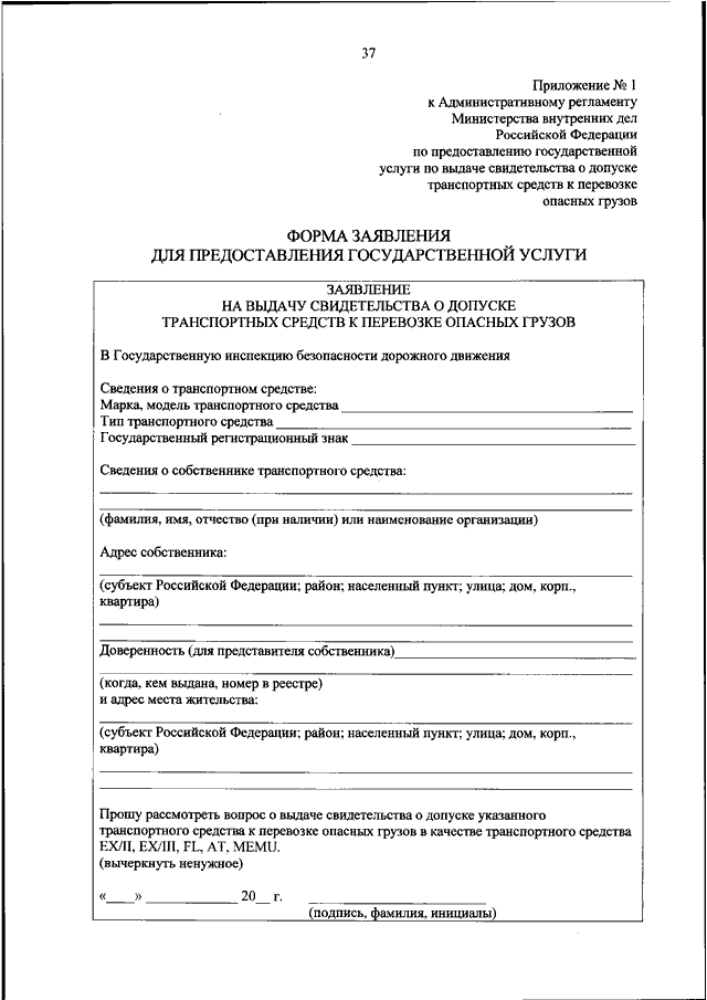 "ОБ УТВЕРЖДЕНИИ АДМИНИСТРАТИВНОГО РЕГЛАМЕНТА МИНИСТЕРСТВА ВНУТРЕННИХ ДЕЛ РОССИЙСКОЙ ФЕДЕРАЦИИ ПО ПРЕДОСТАВЛЕНИЮ ГОСУДАРСТВЕННОЙ УСЛУГИ ПО ВЫДАЧЕ СВИДЕТЕЛЬСТВА О ДОПУСКЕ ТРАНСПОРТНЫХ СРЕДСТВ К ПЕРЕВОЗКЕ ОПАСНЫХ ГРУЗОВ"
