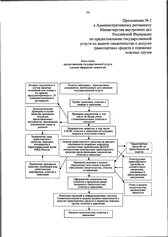 "ОБ УТВЕРЖДЕНИИ АДМИНИСТРАТИВНОГО РЕГЛАМЕНТА МИНИСТЕРСТВА ВНУТРЕННИХ ДЕЛ РОССИЙСКОЙ ФЕДЕРАЦИИ ПО ПРЕДОСТАВЛЕНИЮ ГОСУДАРСТВЕННОЙ УСЛУГИ ПО ВЫДАЧЕ СВИДЕТЕЛЬСТВА О ДОПУСКЕ ТРАНСПОРТНЫХ СРЕДСТВ К ПЕРЕВОЗКЕ ОПАСНЫХ ГРУЗОВ"