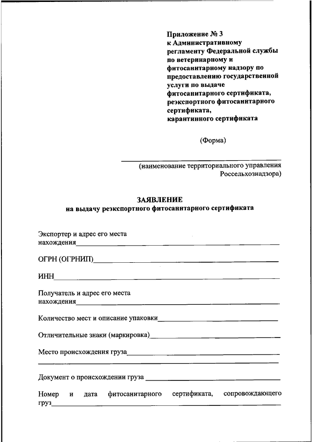 "ОБ УТВЕРЖДЕНИИ АДМИНИСТРАТИВНОГО РЕГЛАМЕНТА ФЕДЕРАЛЬНОЙ СЛУЖБЫ ПО ВЕТЕРИНАРНОМУ И ФИТОСАНИТАРНОМУ НАДЗОРУ ПО ПРЕДОСТАВЛЕНИЮ ГОСУДАРСТВЕННОЙ УСЛУГИ ПО ВЫДАЧЕ ФИТОСАНИТАРНОГО СЕРТИФИКАТА, РЕЭКСПОРТНОГО ФИТОСАНИТАРНОГО СЕРТИФИКАТА, КАРАНТИННОГО СЕРТИФИКАТА"