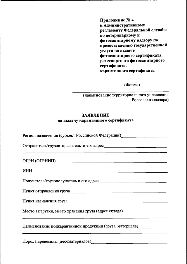 "ОБ УТВЕРЖДЕНИИ АДМИНИСТРАТИВНОГО РЕГЛАМЕНТА ФЕДЕРАЛЬНОЙ СЛУЖБЫ ПО ВЕТЕРИНАРНОМУ И ФИТОСАНИТАРНОМУ НАДЗОРУ ПО ПРЕДОСТАВЛЕНИЮ ГОСУДАРСТВЕННОЙ УСЛУГИ ПО ВЫДАЧЕ ФИТОСАНИТАРНОГО СЕРТИФИКАТА, РЕЭКСПОРТНОГО ФИТОСАНИТАРНОГО СЕРТИФИКАТА, КАРАНТИННОГО СЕРТИФИКАТА"