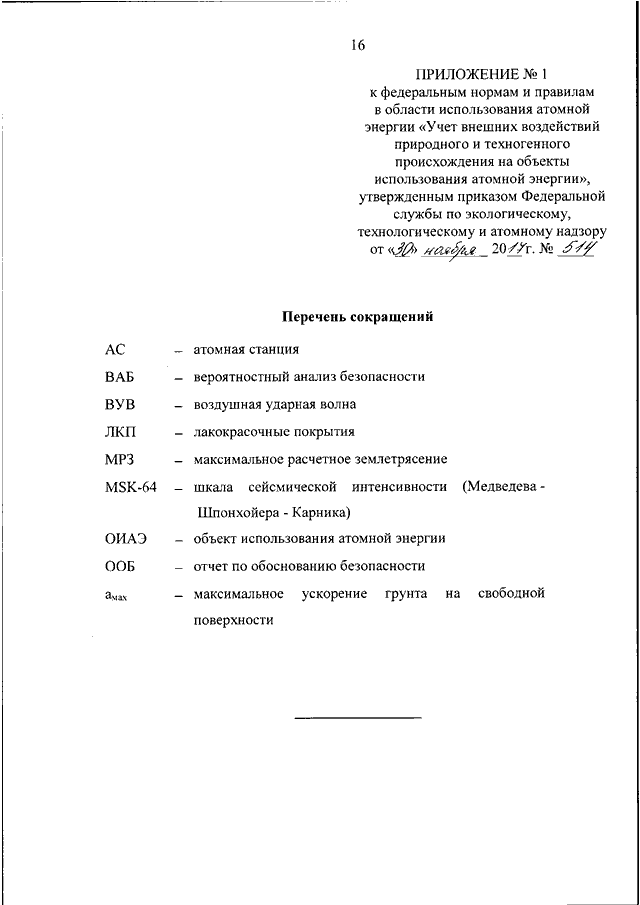 "ОБ УТВЕРЖДЕНИИ ФЕДЕРАЛЬНЫХ НОРМ И ПРАВИЛ В ОБЛАСТИ ИСПОЛЬЗОВАНИЯ АТОМНОЙ ЭНЕРГИИ "УЧЕТ ВНЕШНИХ ВОЗДЕЙСТВИЙ ПРИРОДНОГО И ТЕХНОГЕННОГО ПРОИСХОЖДЕНИЯ НА ОБЪЕКТЫ ИСПОЛЬЗОВАНИЯ АТОМНОЙ ЭНЕРГИИ"