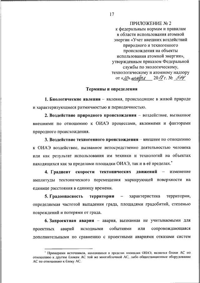 "ОБ УТВЕРЖДЕНИИ ФЕДЕРАЛЬНЫХ НОРМ И ПРАВИЛ В ОБЛАСТИ ИСПОЛЬЗОВАНИЯ АТОМНОЙ ЭНЕРГИИ "УЧЕТ ВНЕШНИХ ВОЗДЕЙСТВИЙ ПРИРОДНОГО И ТЕХНОГЕННОГО ПРОИСХОЖДЕНИЯ НА ОБЪЕКТЫ ИСПОЛЬЗОВАНИЯ АТОМНОЙ ЭНЕРГИИ"