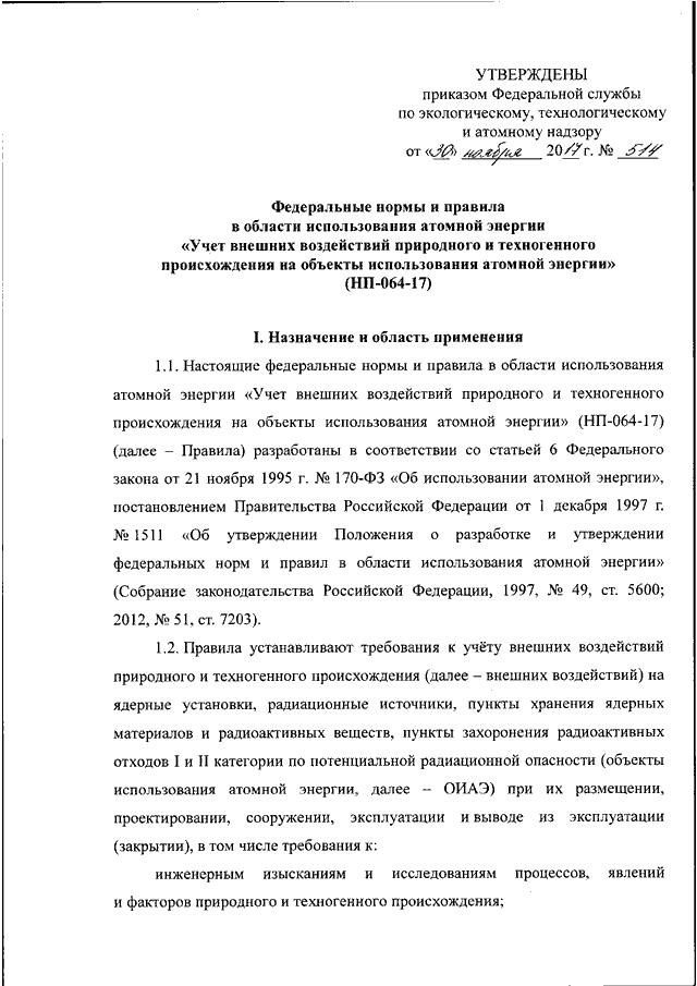 (вместе с ФЕДЕРАЛЬНЫМИ НОРМАМИ И ПРАВИЛАМИ НП-064-17) (Зарегистрировано в Минюсте РФ 26.12.2017 N 49461)