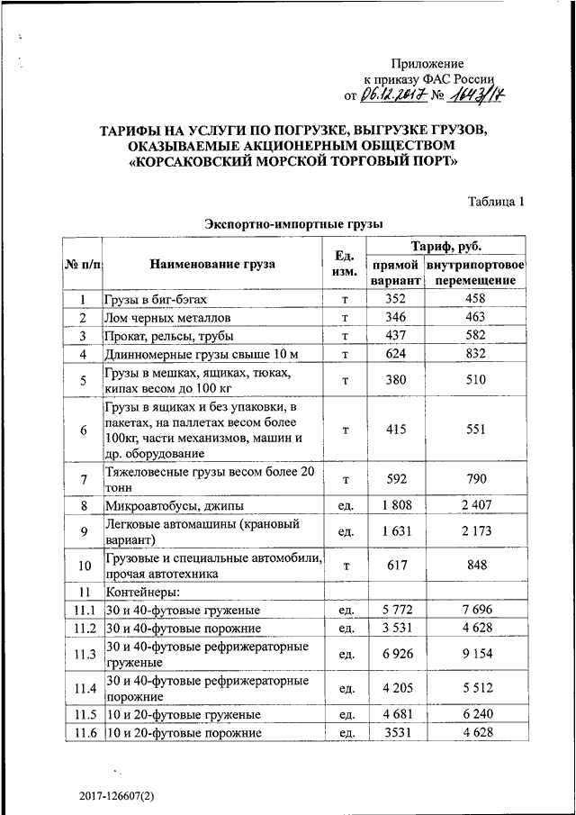 "ОБ УТВЕРЖДЕНИИ ТАРИФОВ НА УСЛУГИ ПО ПОГРУЗКЕ, ВЫГРУЗКЕ ГРУЗОВ В МОРСКОМ ПОРТУ, УСЛУГИ ПО ОБСЛУЖИВАНИЮ ПАССАЖИРОВ В ПАССАЖИРСКОМ ТЕРМИНАЛЕ МОРСКОГО ПОРТА КОРСАКОВ, ОКАЗЫВАЕМЫЕ АКЦИОНЕРНЫМ ОБЩЕСТВОМ "КОРСАКОВСКИЙ МОРСКОЙ ТОРГОВЫЙ ПОРТ"