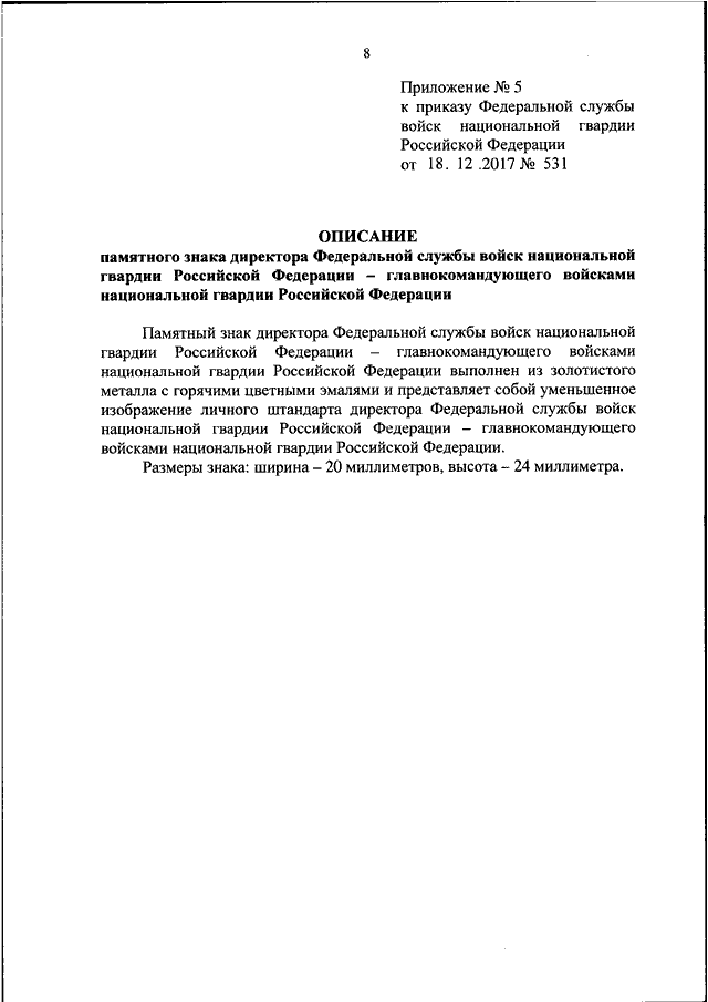 ПРИКАЗ Росгвардии от 18.12.2017 N 531