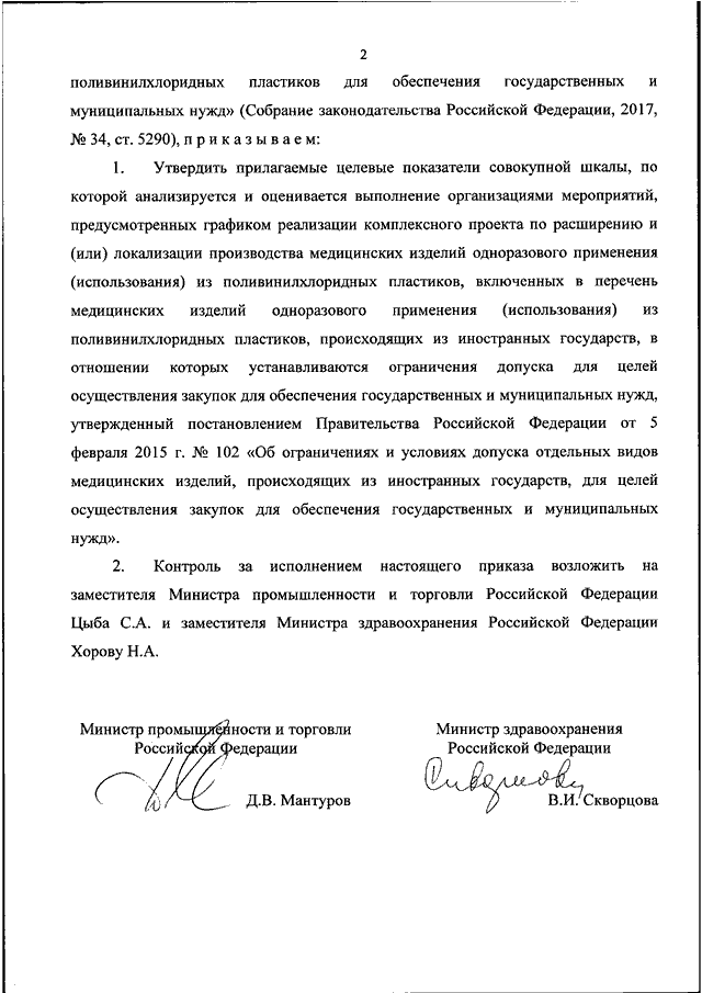 "ОБ УТВЕРЖДЕНИИ ЦЕЛЕВЫХ ПОКАЗАТЕЛЕЙ СОВОКУПНОЙ ШКАЛЫ, ПО КОТОРОЙ АНАЛИЗИРУЕТСЯ И ОЦЕНИВАЕТСЯ ВЫПОЛНЕНИЕ ОРГАНИЗАЦИЯМИ МЕРОПРИЯТИЙ, ПРЕДУСМОТРЕННЫХ ГРАФИКОМ РЕАЛИЗАЦИИ КОМПЛЕКСНОГО ПРОЕКТА ПО РАСШИРЕНИЮ И (ИЛИ) ЛОКАЛИЗАЦИИ ПРОИЗВОДСТВА МЕДИЦИНСКИХ ИЗДЕЛИЙ ОДНОРАЗОВОГО ПРИМЕНЕНИЯ (ИСПОЛЬЗОВАНИЯ) ИЗ ПОЛИВИНИЛХЛОРИДНЫХ ПЛАСТИКОВ, ВКЛЮЧЕННЫХ В ПЕРЕЧЕНЬ МЕДИЦИНСКИХ ИЗДЕЛИЙ ОДНОРАЗОВОГО ПРИМЕНЕНИЯ (ИСПОЛЬЗОВАНИЯ) ИЗ ПОЛИВИНИЛХЛОРИДНЫХ ПЛАСТИКОВ, ПРОИСХОДЯЩИХ ИЗ ИНОСТРАННЫХ ГОСУДАРСТВ, В ОТНОШЕНИИ КОТОРЫХ УСТАНАВЛИВАЮТСЯ ОГРАНИЧЕНИЯ ДОПУСКА ДЛЯ ЦЕЛЕЙ ОСУЩЕСТВЛЕНИЯ ЗАКУПОК ДЛЯ ОБЕСПЕЧЕНИЯ ГОСУДАРСТВЕННЫХ И МУНИЦИПАЛЬНЫХ НУЖД, УТВЕРЖДЕННЫЙ ПОСТАНОВЛЕНИЕМ ПРАВИТЕЛЬСТВА РОССИЙСКОЙ ФЕДЕРАЦИИ ОТ 5 ФЕВРАЛЯ 2015 Г. N 102 "ОБ ОГРАНИЧЕНИЯХ И УСЛОВИЯХ ДОПУСКА ОТДЕЛЬНЫХ ВИДОВ МЕДИЦИНСКИХ ИЗДЕЛИЙ, ПРОИСХОДЯЩИХ ИЗ ИНОСТРАННЫХ ГОСУДАРСТВ, ДЛЯ ЦЕЛЕЙ ОСУЩЕСТВЛЕНИЯ ЗАКУПОК ДЛЯ ОБЕСПЕЧЕНИЯ ГОСУДАРСТВЕННЫХ И МУНИЦИПАЛЬНЫХ НУЖД"