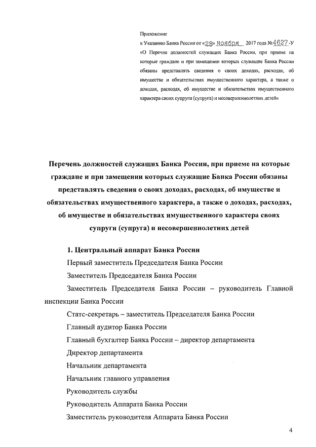 УКАЗАНИЕ ЦБ РФ от 28.11.2017 N 4627-У