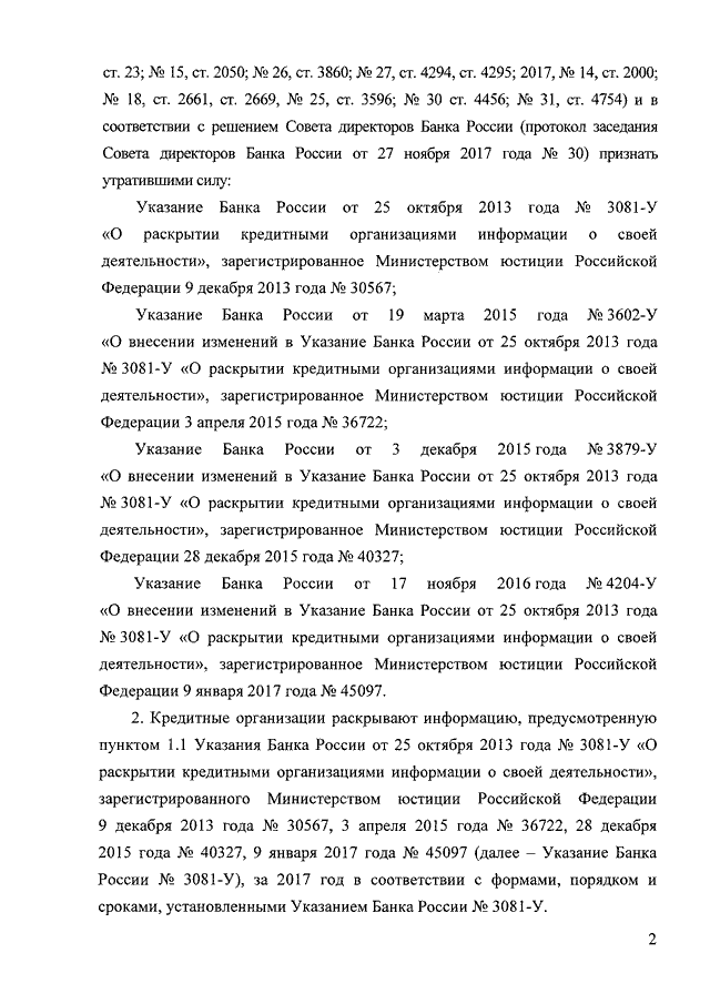 "О ПРИЗНАНИИ УТРАТИВШИМИ СИЛУ ОТДЕЛЬНЫХ НОРМАТИВНЫХ АКТОВ БАНКА РОССИИ ПО ВОПРОСУ РАСКРЫТИЯ КРЕДИТНЫМИ ОРГАНИЗАЦИЯМИ ИНФОРМАЦИИ О СВОЕЙ ДЕЯТЕЛЬНОСТИ"
