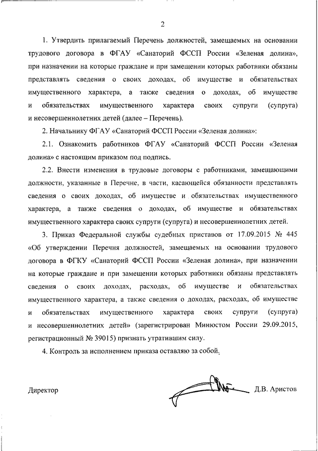 ТРУДОВОГО ДОГОВОРА В ФГАУ "САНАТОРИЙ ФССП РОССИИ "ЗЕЛЕНАЯ ДОЛИНА",