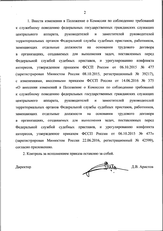"О ВНЕСЕНИИ ИЗМЕНЕНИЙ В ПОЛОЖЕНИЕ О КОМИССИИ ПО СОБЛЮДЕНИЮ ТРЕБОВАНИЙ К СЛУЖЕБНОМУ ПОВЕДЕНИЮ ФЕДЕРАЛЬНЫХ ГОСУДАРСТВЕННЫХ ГРАЖДАНСКИХ СЛУЖАЩИХ ЦЕНТРАЛЬНОГО АППАРАТА, РУКОВОДИТЕЛЕЙ И ЗАМЕСТИТЕЛЕЙ РУКОВОДИТЕЛЕЙ ТЕРРИТОРИАЛЬНЫХ ОРГАНОВ ФЕДЕРАЛЬНОЙ СЛУЖБЫ СУДЕБНЫХ ПРИСТАВОВ, РАБОТНИКОВ, ЗАМЕЩАЮЩИХ ОТДЕЛЬНЫЕ ДОЛЖНОСТИ НА ОСНОВАНИИ ТРУДОВОГО ДОГОВОРА В ОРГАНИЗАЦИЯХ, СОЗДАВАЕМЫХ ДЛЯ ВЫПОЛНЕНИЯ ЗАДАЧ, ПОСТАВЛЕННЫХ ПЕРЕД ФЕДЕРАЛЬНОЙ СЛУЖБОЙ СУДЕБНЫХ ПРИСТАВОВ, И УРЕГУЛИРОВАНИЮ КОНФЛИКТА ИНТЕРЕСОВ, УТВЕРЖДЕННОЕ ПРИКАЗОМ ФССП РОССИИ ОТ 06.10.2015 N 477"