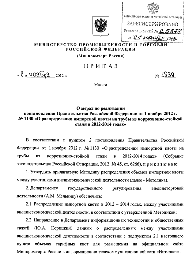 ПРИКАЗ Минпромторга РФ от 06.11.2012 N 1639